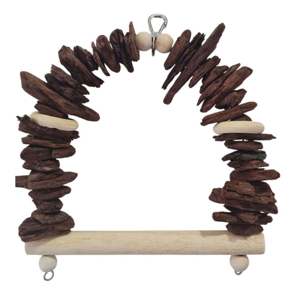Transforme a rotina da sua ave em momentos de alegria: o balanço Amora, feito à mão em madeira pinus com argolas e bolinhas, garante diversão, bem-estar e mais felicidade para quem você ama.
